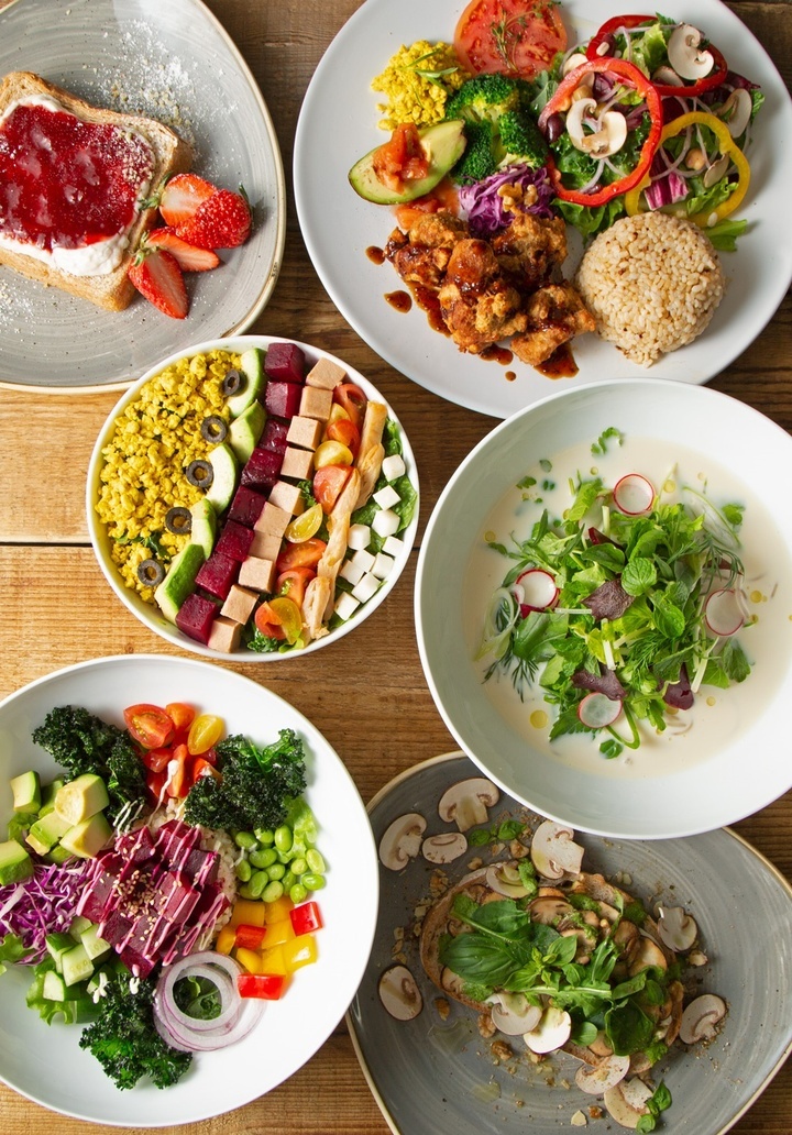 アメリカ西海岸のカフェのような緑あふれる空間で、VEGANメニューをお楽しみください。グルテンフリーや高プロテインなど目的や気分に合わせて楽しめるメニューや、ボリュームたっぷりのサラダやプラントベースパテを使ったハンバーガー、ロコモコなど