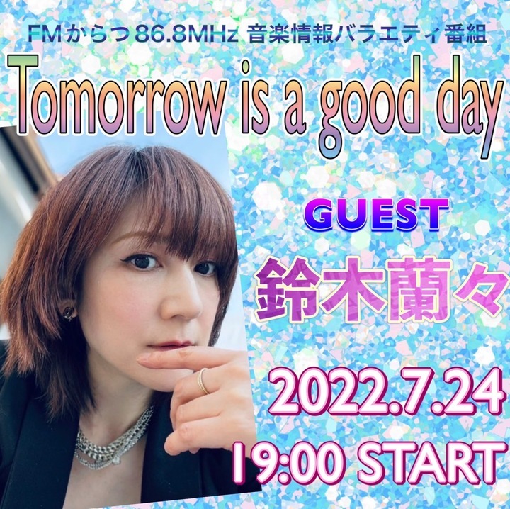 7月24日(日)19時より、FMからつ「Tomorrow is a good day」に女優、MC、モデル、歌手など幅広い分野で活躍し、今は化粧品会社を設立して実業家の顔も持つ鈴木蘭々が出演することがわかった。