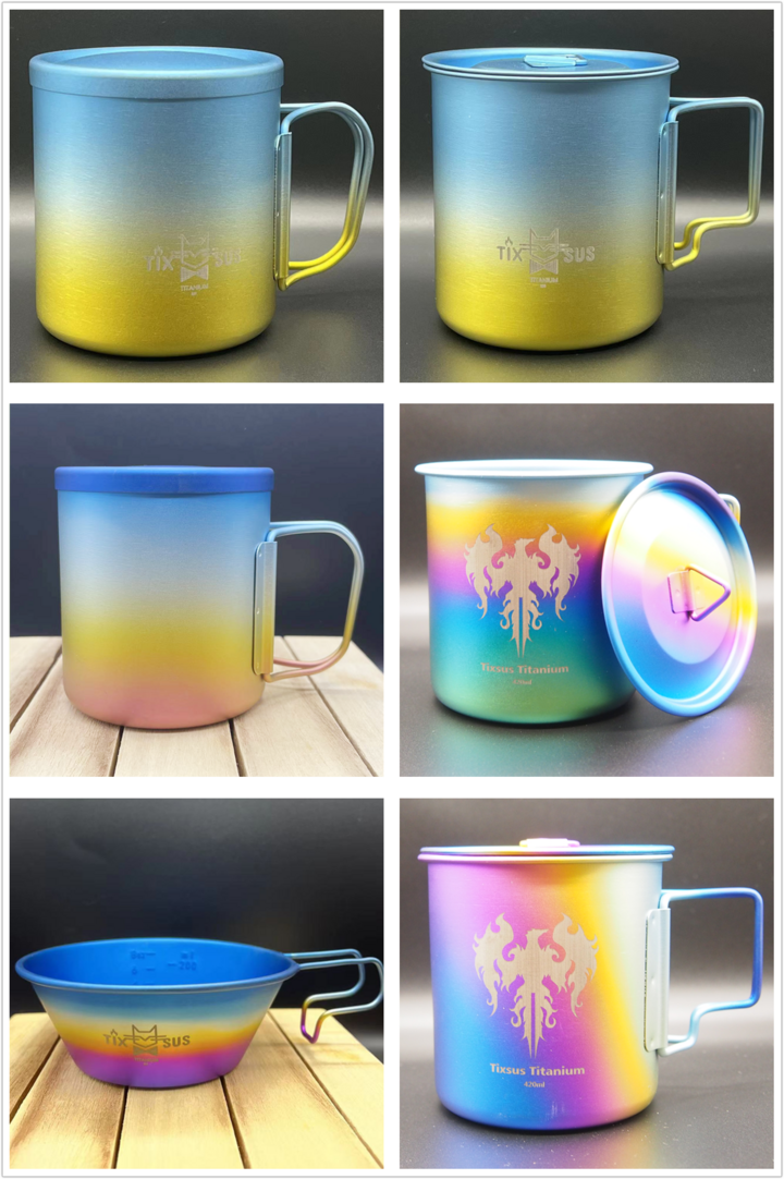 通常に使われるチタン製のマグカップ・シェラカップの単調な色より豊かな色彩を創ることを目指し、普段食卓や家族とのピクニック・キャンプのお供としても使えます。表面のグラデーションは塗装でも、メッキでも、染料でもなく、チタンの表面にグラデーションの酸化被膜を形成させ、軽くて美しいカラーチタンで製品の魅力アップ、メッキや染料や塗装と比べチタンの耐候性、耐食性質感も良好です。