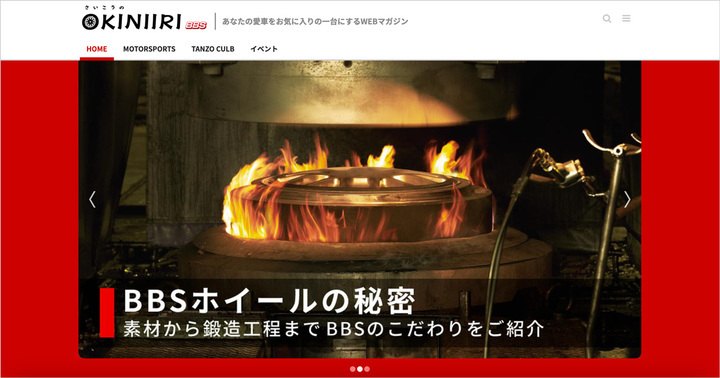 『OKINIIRI』は、キャンペーン・イベント情報からモータースポーツ活動まで、様々な視点でBBSにまつわる情報を発信するオウンドメディアです。BBSホイールの秘密や、ユーザーがカーライフを楽しむためのとっておきの”ネタ”が満載なうえ、BBS社員自らが発信するコラムなど、車に詳しい方にも、そうでない方にも、ホイール交換の楽しさが伝わるコンテンツの掲載が予定されています。