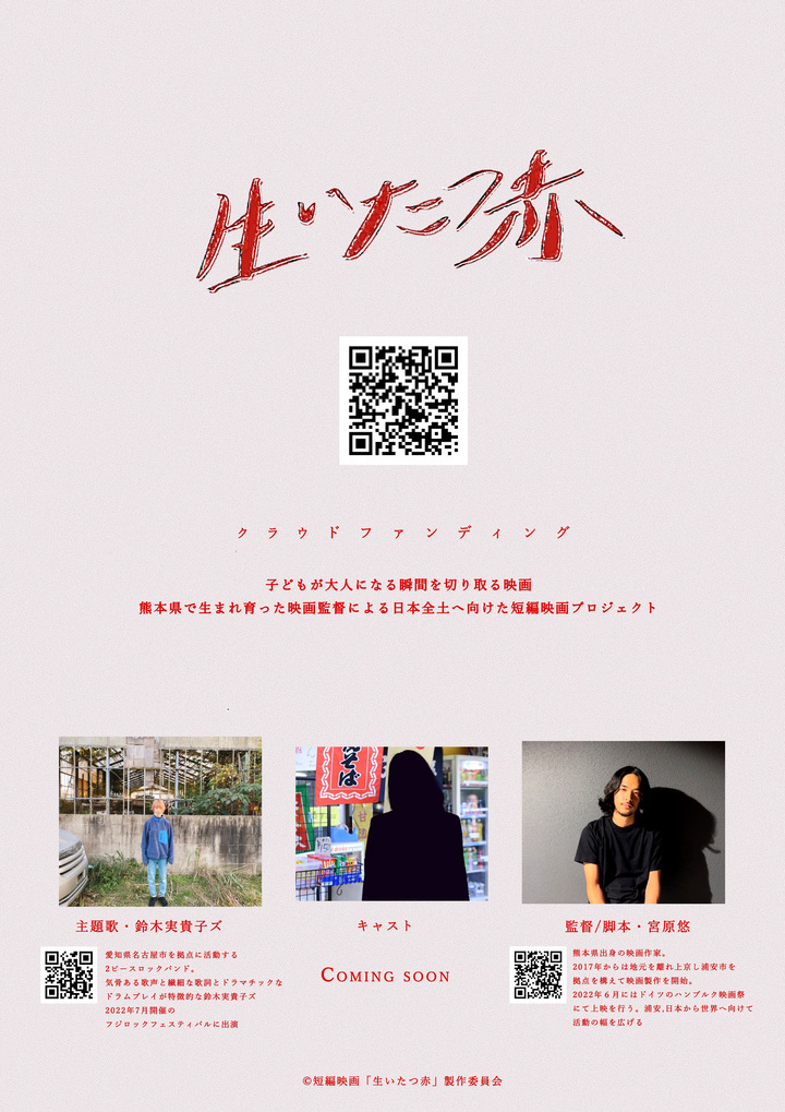 短編映画『生いたつ赤』の自主製作を手掛ける、短編映画『生いたつ赤』製作委員会(映画監督:宮原悠)は、【短編映画『生いたつ赤』製作におけるクラウドファンディング】を、2022年8月4日19時00分(木曜)より開始します。