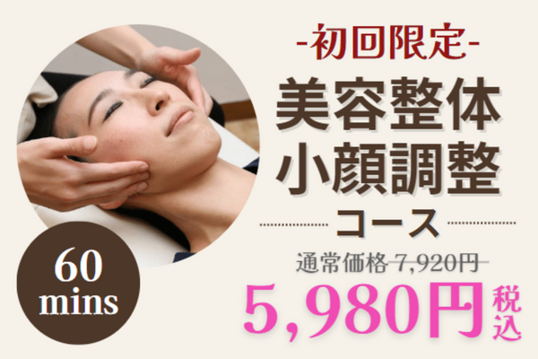 オープニングキャンペーンとして、大人気の美容整体・小顔調整コースを初回ご利用の方 限定で特別価格にてご案内いたします。