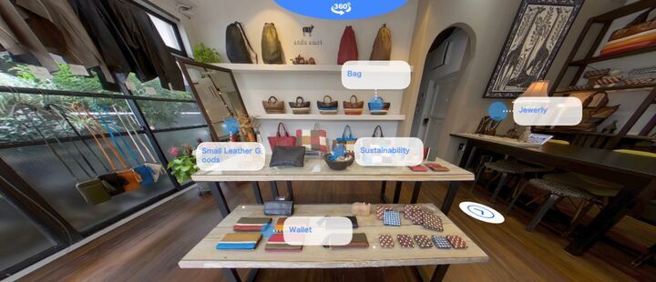 ・360度パノラマ映像の採用により、あたかも自分が店舗にいるような臨場感を体験いただけます。