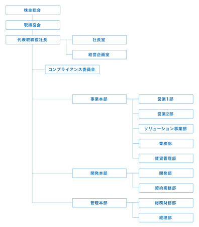 収益部門である「営業本部」、「賃貸本部」を「事業本部」に強化統合しました。