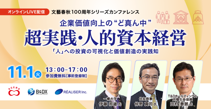 文藝春秋主催「企業価値向上の“ど真ん中” 超実践・人的資本経営~「人」への投資の可視化と価値創造の実践知~」に登壇決定。