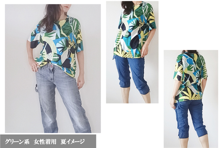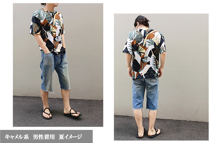 ユニセックスに着れる リゾート柄Tシャツと、