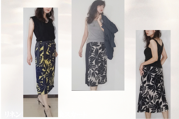 曲線の美しい花柄のスカートを