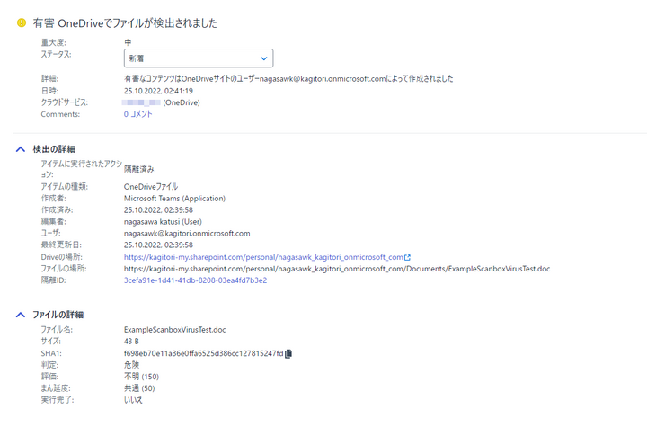 ● Microsoft Exchange/SharePoint/OneDrive上のアイテムと有害コンテンツのURLをスキャン
