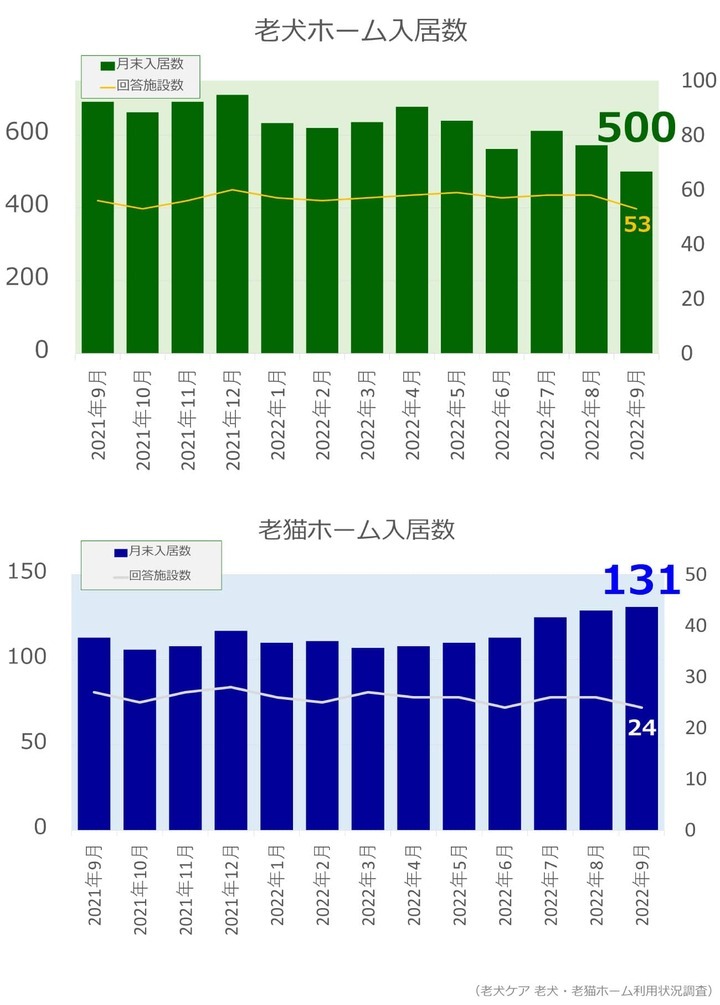 老犬・老猫ホーム入居数調査(2022年9月)