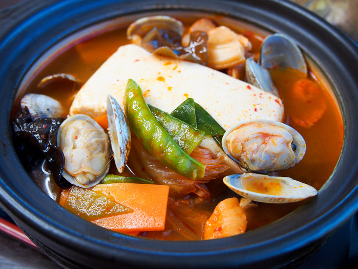 にんにくを合わせた味噌に本場韓国の唐辛子や魚介エキス、りんごを加えて辛さの中にも旨味が感じられる奥深い味わいに仕上げたスンドゥブ。冷え性改善に効果が期待できる唐辛子の辛味成分、カプサイシンが血行を促進させて全身を温めます。また、鉄分が豊富なあさりも身体の冷え改善に大敵な貧血を予防する効果が期待でき、温活にもってこいのメニューに仕上がっています。お好みでシェフ特製の「オリゴノール入り旨味唐辛子スパイス」を入れてお好きな辛さにしてお召し上がりください。