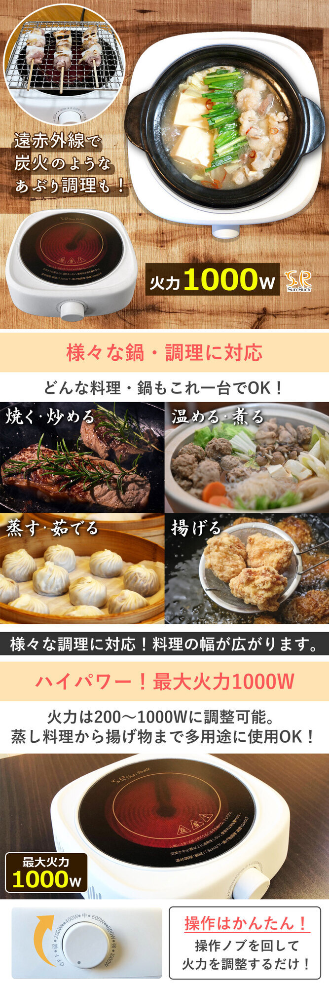 様々な鍋・調理に対応!コンパクトだけどハイパワー「ラジエントヒーター SR-YTC-04W」が SunRuck(サンルック)より発売!