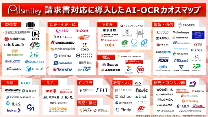 本資料は、請求書業務などでAI-OCRを使用している企業のプレスリリースや製品サイト、導入実績などの公開情報を基に作成しております。