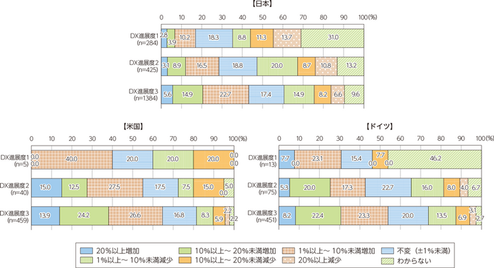 情報通信白書によれば、DX進展度の高い企業ほど、売上高が増加する傾向があることがわかっています。