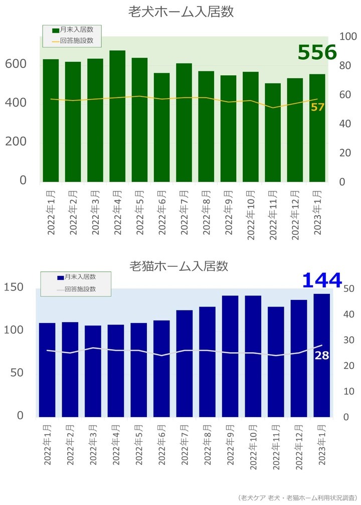 老犬・老猫ホーム入居数調査(2023年1月)発表