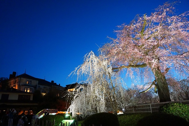 京都市指定有形文化財・長楽館にて、2023年3月26日(日)~4月5日(水)に個室貸切プラン「夜桜プライベートディナー」を提供。喧騒から離れて、円山公園の祇園枝垂桜に面した洋館の一室で夜桜を眺めながらフレンチディナーを味わう特別プラン。売上の一部は祇園枝垂桜保全のため京都市建設局南部みどり管理事務所に寄付します。