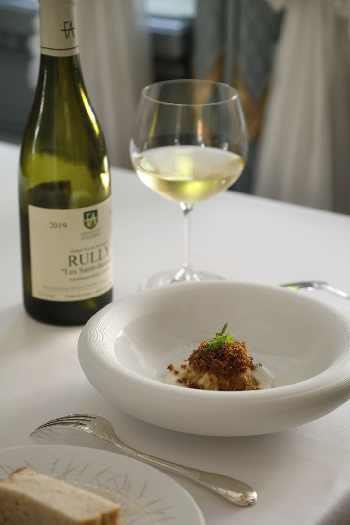 本プランの前菜は「ブールノワゼット・スナケ」。フランス料理ならではのブールノワゼット(焦がしバター)でサクサクとした心地良い触感に仕上げ、濃厚な香りを纏わせた長楽館FRENCH LE CHENEのスペシャリテです。