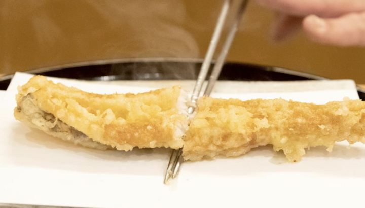 小麦粉をマイナス60度に冷やしダマの原因であるグルテンの発生を抑えて作られた衣は非常に口溶け良くタネの旨味が残る完成度の高いもの。