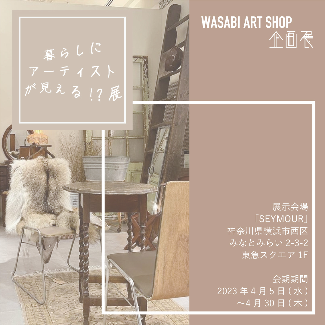 株式会社NOMAL(所在地:東京都中野区、代表取締役:松本祥太郎)の運営する、アート通販サイト「WASABI(ワサビ)」 http://wasabi-nomal.com/ は4/5〜横浜みなとみらい駅直通の東急スクエア1階ヴィンテージ家具店SEYMOREにて【暮らしにアーティストが見える!?展】を開催致します。4/31までの期間限定展示となり、期間中にはアーティストによるワークショップやライブパフォーマンスが行われます。