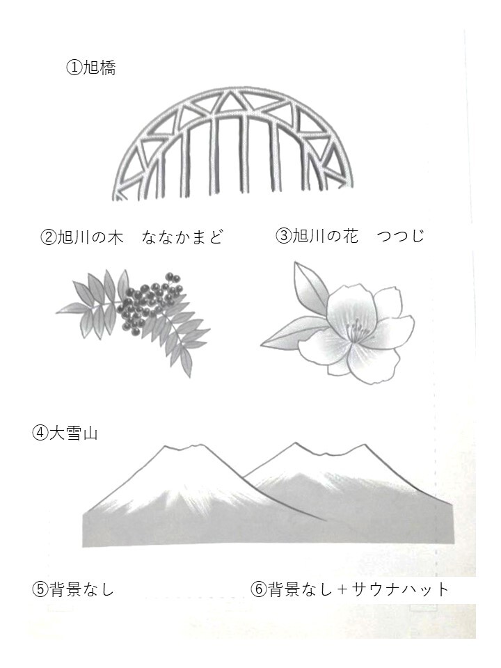 似顔絵の背景には、旭川市のシンボルである「ななかまど」や「つつじ」、「旭橋」や「大雪山」など、地域ならではのイラストを加えていただけます。