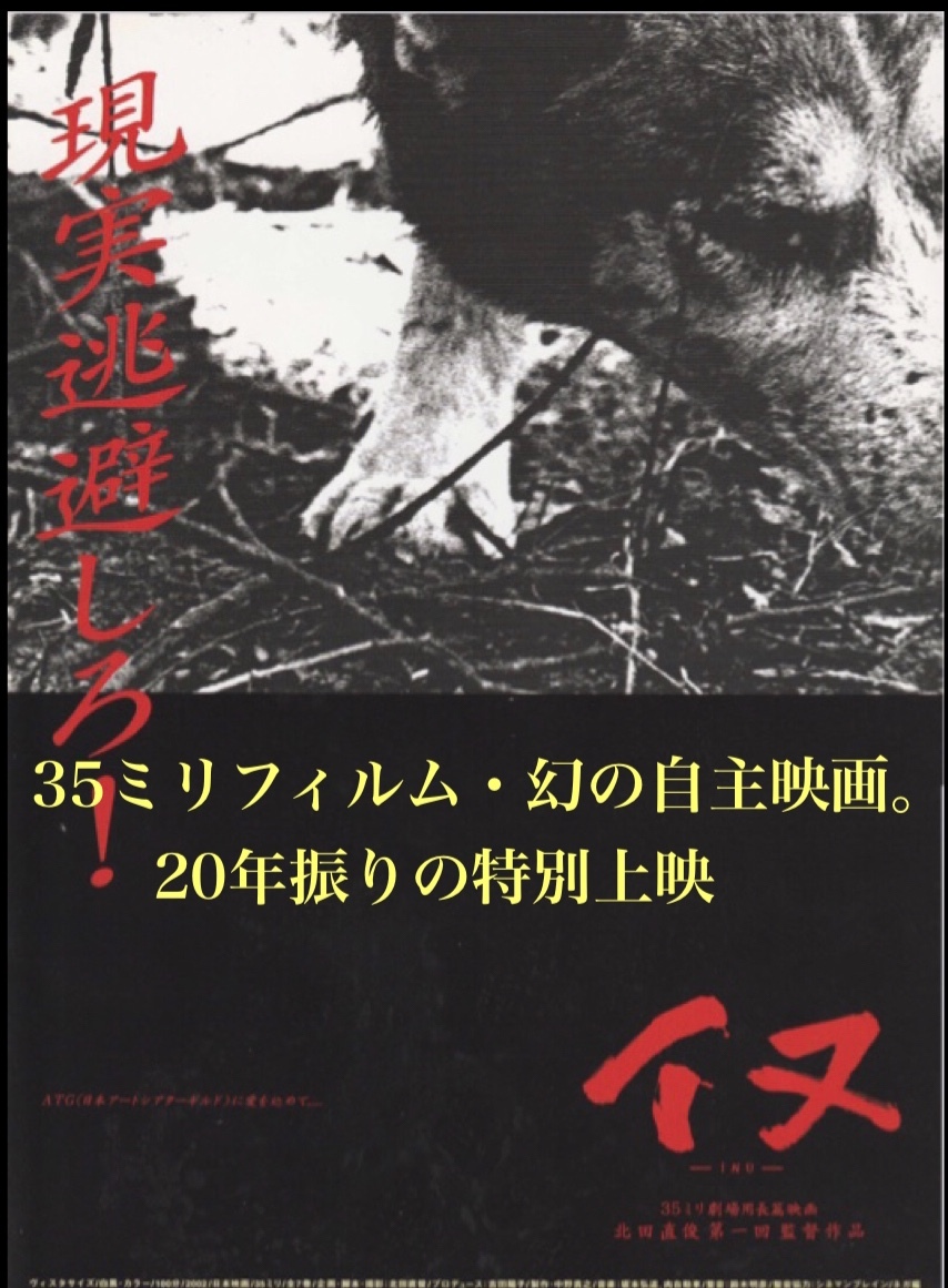 「ZONE/存在しなかった命」「みえない汚染・飯舘村の動物たち」「アジア犬肉紀行」「動物愛護法」など、社会的テーマを題材にした衝撃ドキュメンタリー映画を制作してきた北田直俊監督。その最新作となる社会派Jホラー「佇むモンスター」の公開を記念して、氏の35ミリデビュー作でもある映画『イヌ』(100分)が、6月4日(日)13時から横浜シネマノヴェチェンにて上映される。2003年にシネマ下北沢にて2週間公開後、約20年間もの間封印されてきた幻の35ミリフィルム。今回1回限りの限定公開になる。