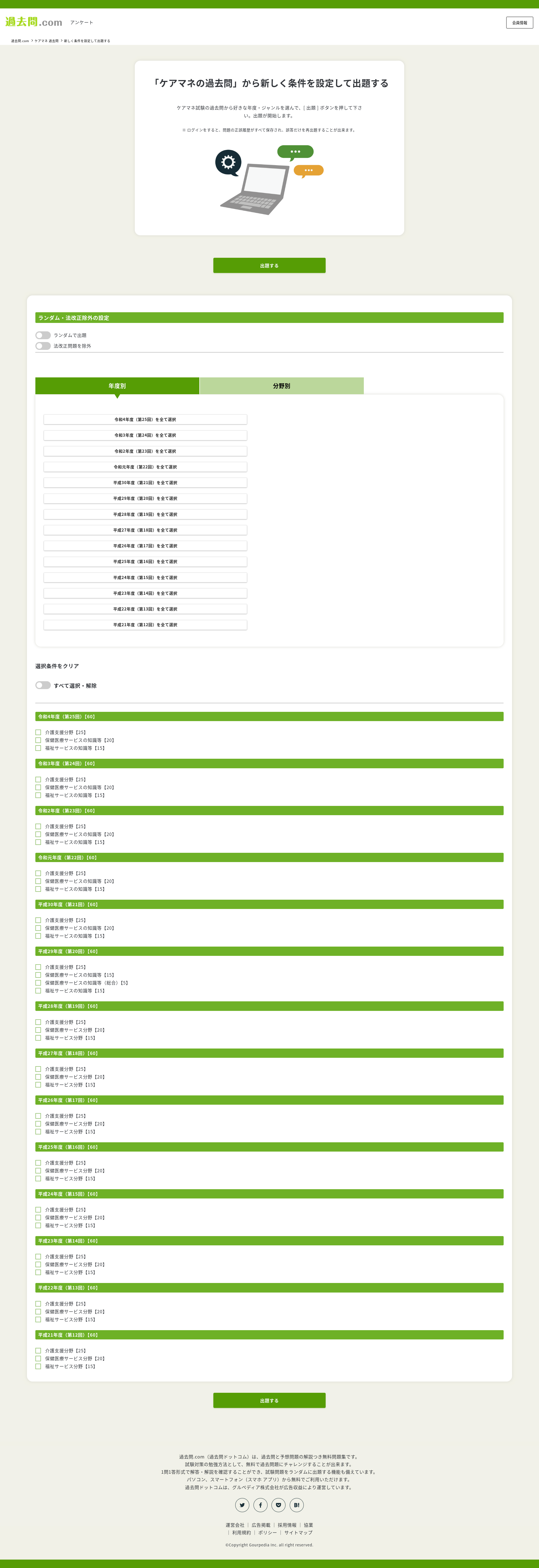 過去問ドットコムの「条件を設定して出題」ページを新デザインに更新