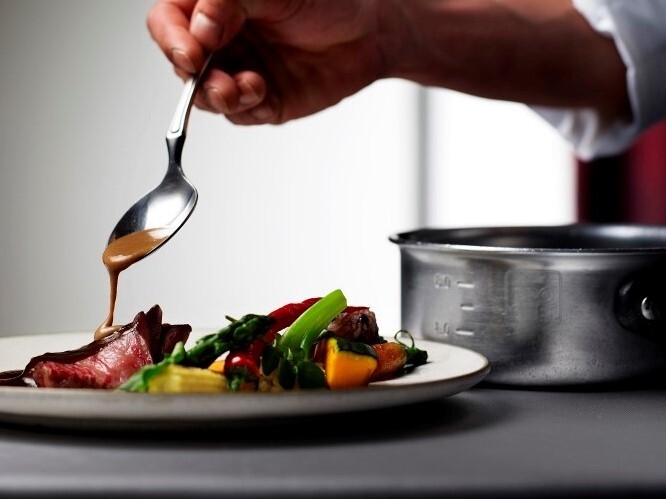 肉料理 しあわせ絆牛ロース肉のロースト ルバーブと赤ワインソース