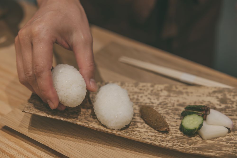 「6年連続金賞受賞」した関農園の「無農薬栽培米」を湖東焼「一志郎窯」の土鍋で炊き上げ、ご注文を受けてから握って提供しております。