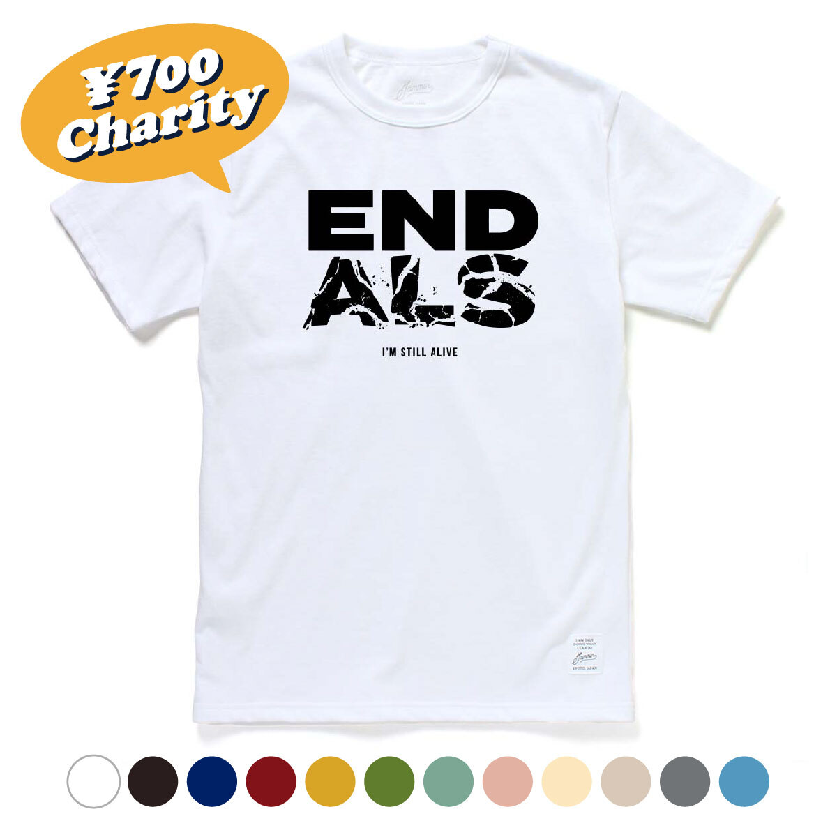 京都発のチャリティー専門ファッションブランド「JAMMIN(ジャミン)」は、世界中にALSの認知・関心を高めるとともに、厚生労働省や医療研究機関などに対し、迅速な治療法の確立と、ALS患者が可能な限り普通の生活、あるいは生活の向上ができるように働きかけることを目的に活動する一般社団法人「END ALS」とコラボし、オリジナルデザインのチャリティーアイテムを制作。チャリティー付きアイテムとして、2023年6月19日(月)から2023年 6月25日(日)まで、JAMMIN ECサイト(https://jammin.co.jp)にて1週間限定販売いたします。
