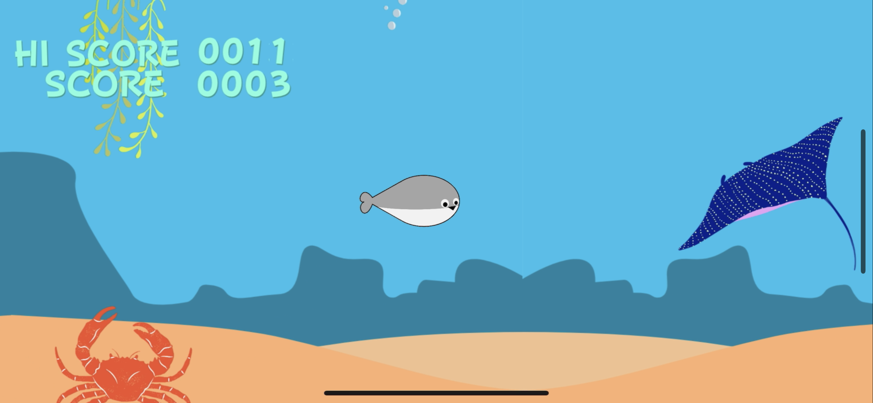 画面をタップすると下に潜りますので、障害物を避けて遠くまで泳ぎましょう。