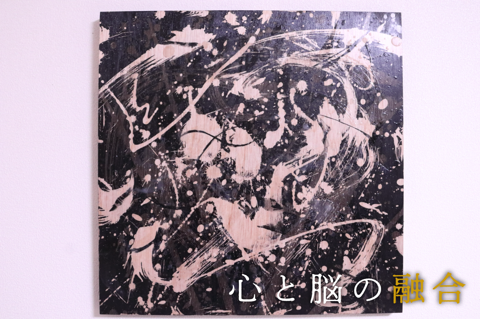 個展で披露するのは、「蝋削画」です。木製パネルに直接、蝋と墨を使って描くというスタイルで、木製パネルの色と木目、2色の墨の色、蝋の色と凹凸で表現。制作工程に蝋を削り落とす作業があるため、「蝋削画」と名付けました。その時に浮かんだ感情、心の模様、人を構成するものを表現する抽象画や可愛らしい動物画など全25点を、タイトルとメッセージを付けて展示します。