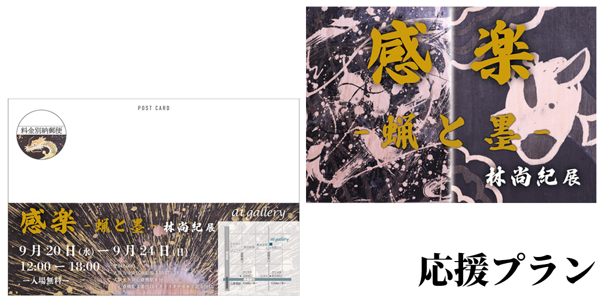 クラウドファンディングのコースは、1,000円から122,000円。オリジナルのポストカードやトートバック、展示作品の予約販売に加え、個展当日に作家本人が握手をしながら感謝の言葉をお伝えするという珍しいリターンも用意しました。個展のタイトルは、来場者の皆さんに「感じてほしい」「楽しんでほしい」という思いから『感楽』と命名。実現に必要な32万円を目標に、8月31日(木)までプロジェクトを実施いたします。