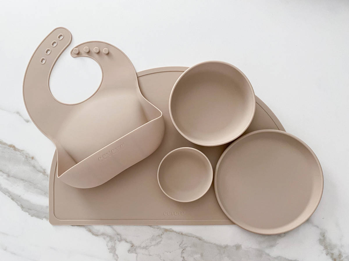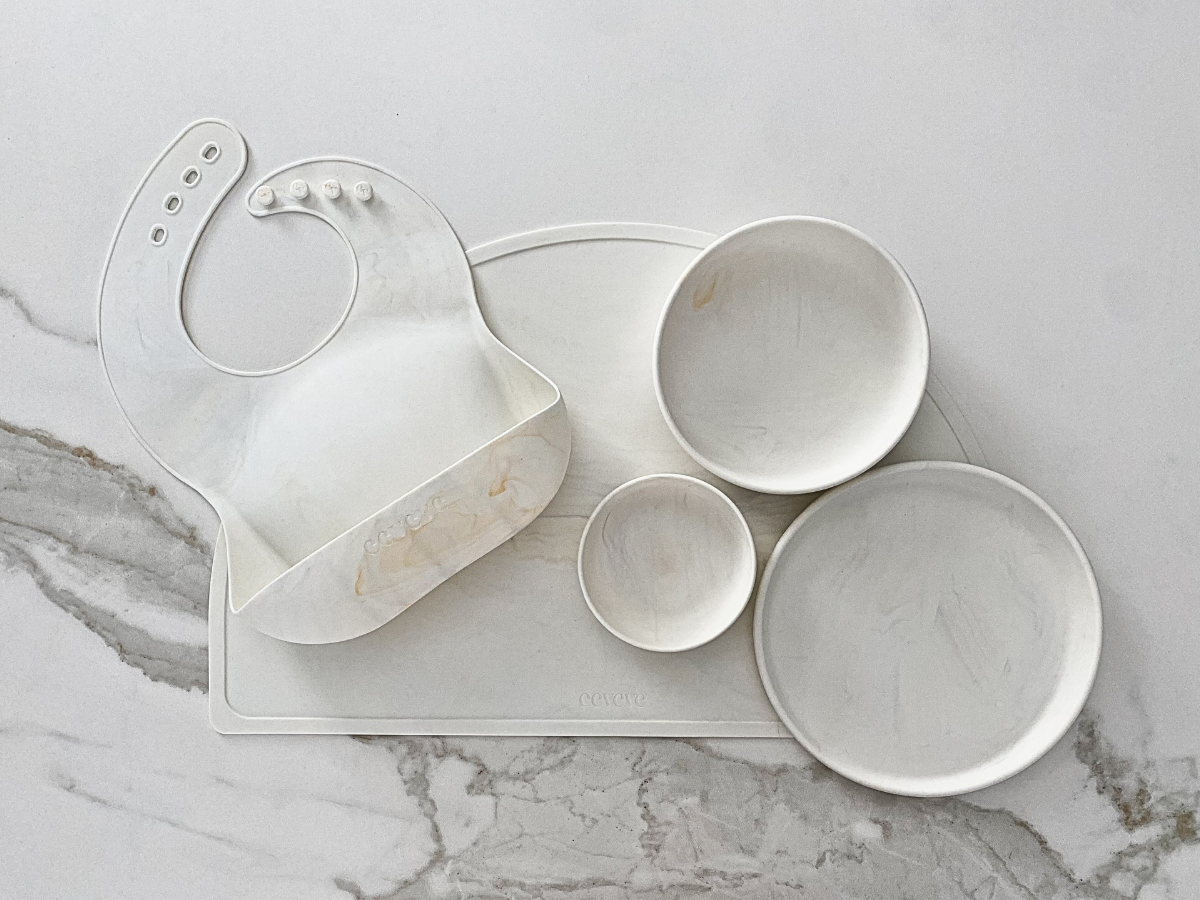 eeveveのシリコン食器には、ボウル(大小)・プレート・ビブ・プレースマットがあり、全て100%食品に安全な高品質のシリコンを使用しています。健康に害のあるBPA・フタル酸エステル類が含まれていないので、安心して赤ちゃんの離乳食に使えます。