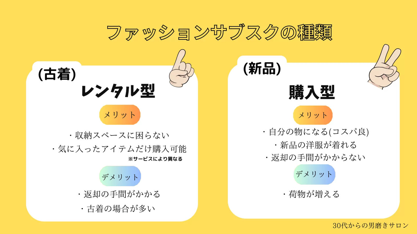 30代からの男磨き(外見・内面)について情報を発信しているWEBメディア〜30代からの男磨きサロン〜が、今流行りの、届いた洋服を着るだけで誰でもオシャレになれる”メンズ服レンタルサブスク”人気6社を徹底比較しました。「朝のコーデを決めるイライラから解放される」「買い物に行かなくて良い」「レンタルだから荷物が増えない」「センスがないけどオシャレになれる」ということでサービス利用者が爆増しています。でも、同じような会社がありすぎて選べないという人にオススメの記事です。