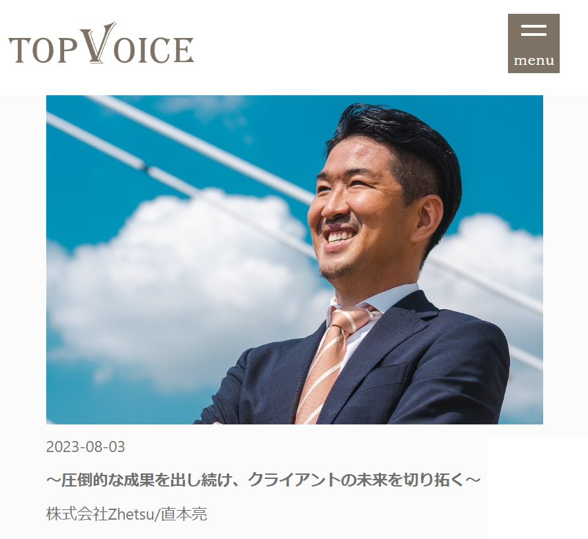 ▼圧倒的な成果を出し続け、クライアントの未来を切り拓く(「TOPVOICE」公式サイト)