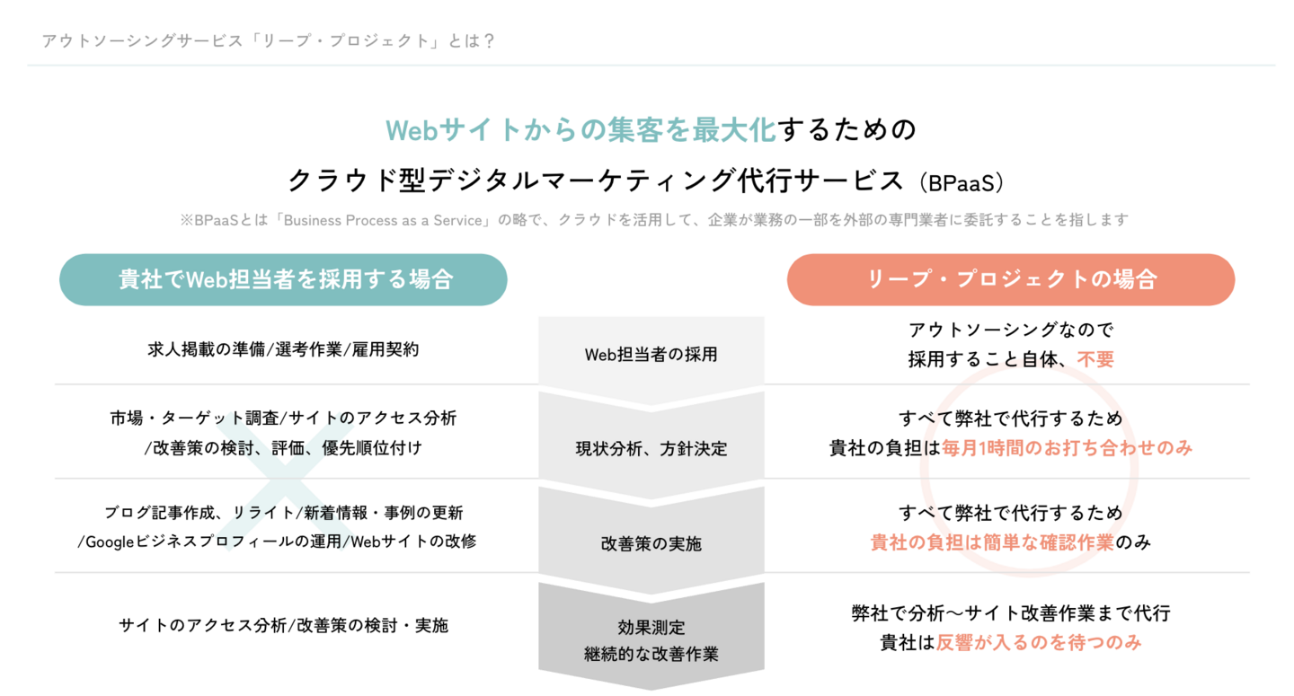 ・Web反響獲得のための目的としたアウトソーシングサービス「リープ・プロジェクト」