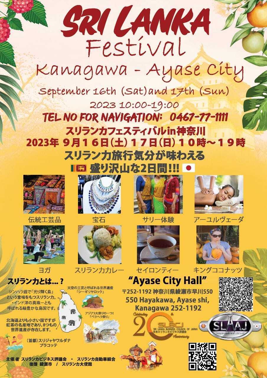 そして、2023年9月16日(土)、17日(日)の2日間、スリランカビジネス評議会と在日スリランカ自動車組合が主催となり、神奈川県綾瀬市、そして駐日スリランカ大使館による後援のもと、綾瀬市役所広場および東山公園にて「スリランカフェスティバル in 神奈川」が開催されます。