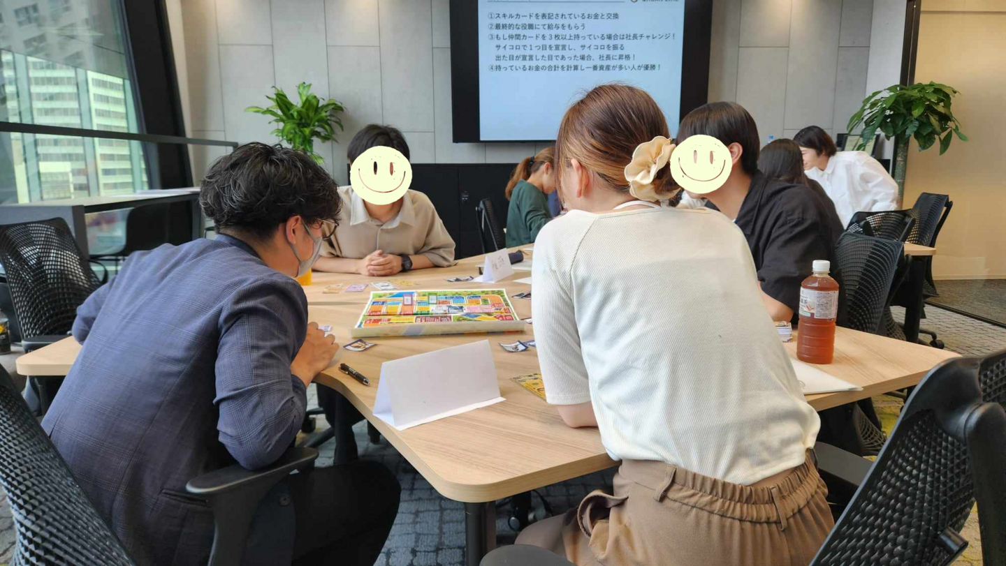 午後は「自分の人生を振り返って人生ゲームにしよう」というテーマで、今までの人生をじっくり振り返って、学生一人一人特製の人生ゲームを作成してもらいました。人生ゲームのマスを作成するために、自分の過去の出来事とその出来事に対する感情の動きを洗い出す段階では、学生もとても苦戦しておりました。しかし、実際に自分の過去を話しながらチームの仲間と人生ゲームを行っている時間は、一日の中で一番盛り上がっており、緊張も解けてきた中で全体的にもとても良いコミュニケーションをとることが出来ていました。このワークについて、アンケート内では「自己分析では人生ゲーム形式で実施することで楽しく取り組むことが出来、自分の知らない部分を知ることが出来ました。」「インターン生同士でも交流することも出来、充実したものになりました。」というような感想がありました。今回の目的であった「自己分析」に加え、他者とのコミュニケーションや自己開示についても、学生自ら学ぶことが出来ており、多くのことを学ぶ学生の姿に社員も大変心を打たれました。