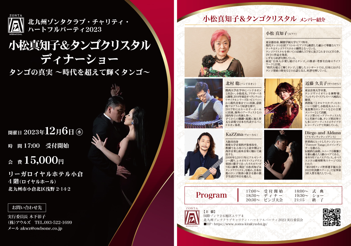 北九州ゾンタクラブ ・チャリティ・ハートフルパーティ2023「小松真知子&タンゴクリスタル ディナーショー タンゴの真実〜時代を超えて輝くタンゴ〜」