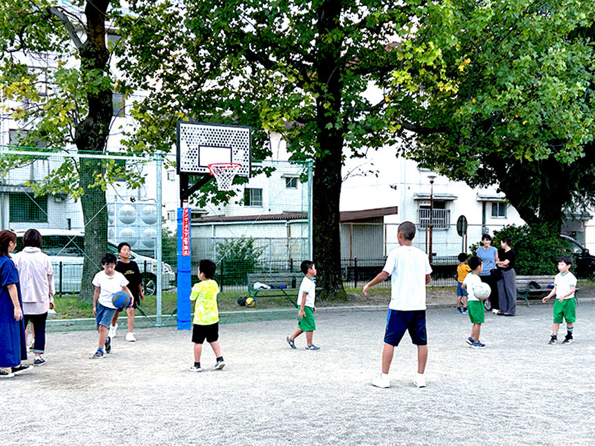 9月末に設置記念式典が行われ、設置翌日から公園には多くの小学生がバスケットボールを楽しむ様子が見られました。