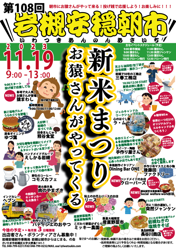 【11/19】第108回岩槻安穏朝市〜新米まつり2023・お猿さんがやってくる〜