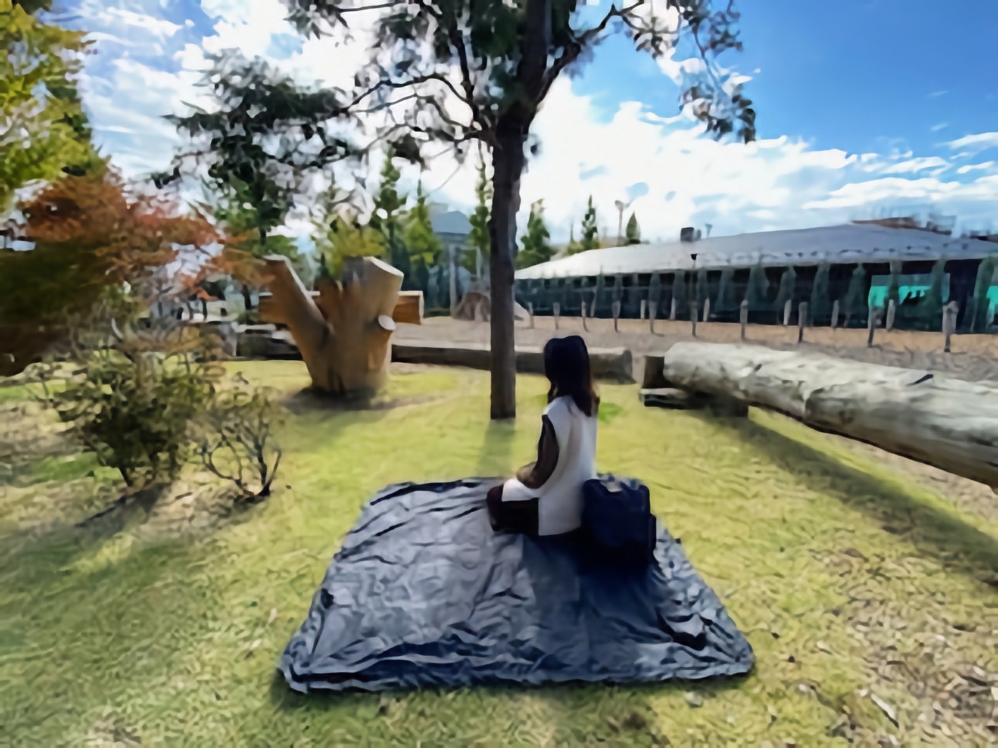 ・広げるとレジャーシートにもなり、サイクリング先などで休憩やピクニックにも使えます。