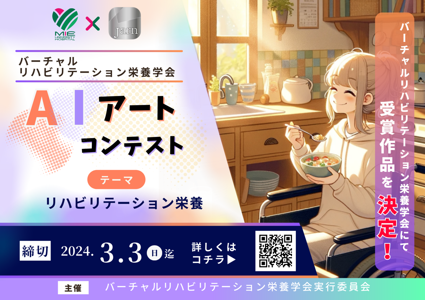 バーチャルリハビリテーション栄養学会日時:2024年3月10日(日)13:00~17:00開催形態 :cluster (メタバースプラットホーム・500名までログイン可能)、YouTubeLIVEでも同時配信申し込み :申し込み不要の公開セミナー、参加費無料https://jarn2024.com/seminar.html
