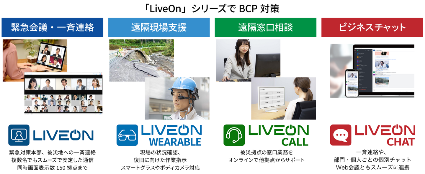 弊社では、BCP対策(事業継続)のためオンラインコミュニケーションシステム「LiveOn」シリーズを無償提供致します。