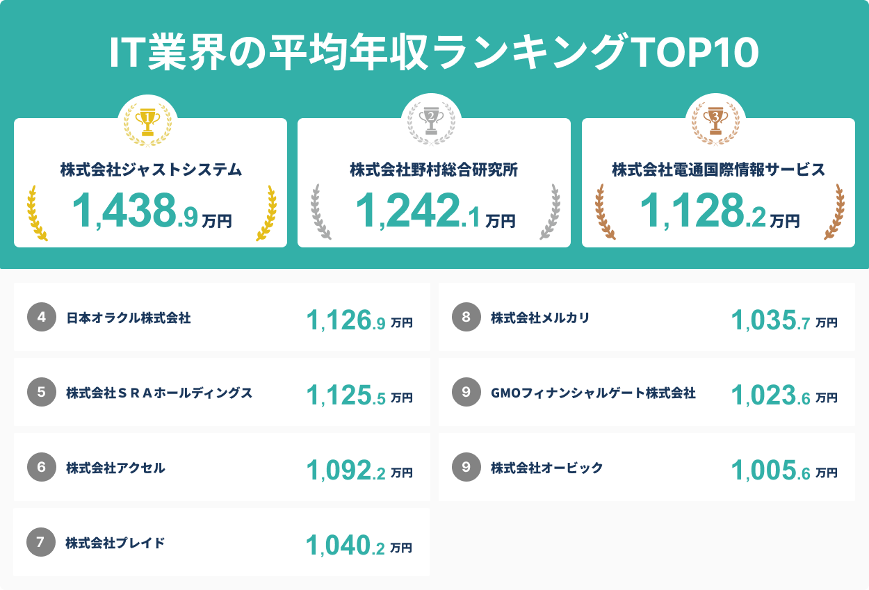 IT業界平均年収ランキングTOP10を発表!/SalesNow DBレポート