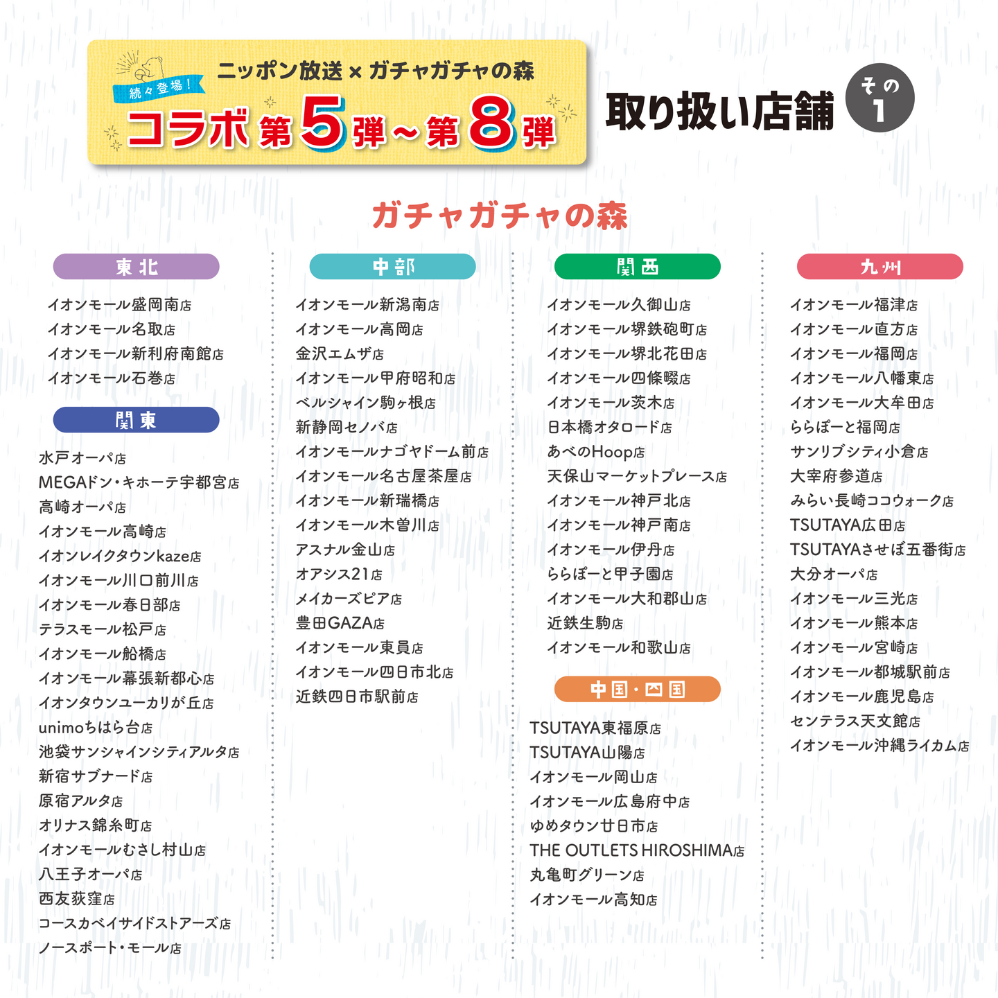 カプセルトイ専門店「ガチャガチャの森」がオールナイトニッポンと3度目のコラボレート企画を発表!店舗限定のコラボ商品も第5弾から第8弾まで一挙公開。