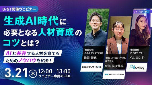 【3/21開催ウェビナー】生成AI時代に必要となる人材育成のコツとは?AIと共存する人材を育てるためのノウハウを紹介!
