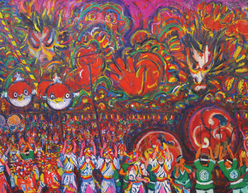 ようやくコロナによる制限が解除されアフターコロナの時代となり、以前のような『祭』が各地で復活をはじめ活気が取り戻し始めています。わたしの絵の原点でもある『祭』。今回の個展は例年と違い、祭にスポットをあて、『祭シリーズ』の展示を行います。