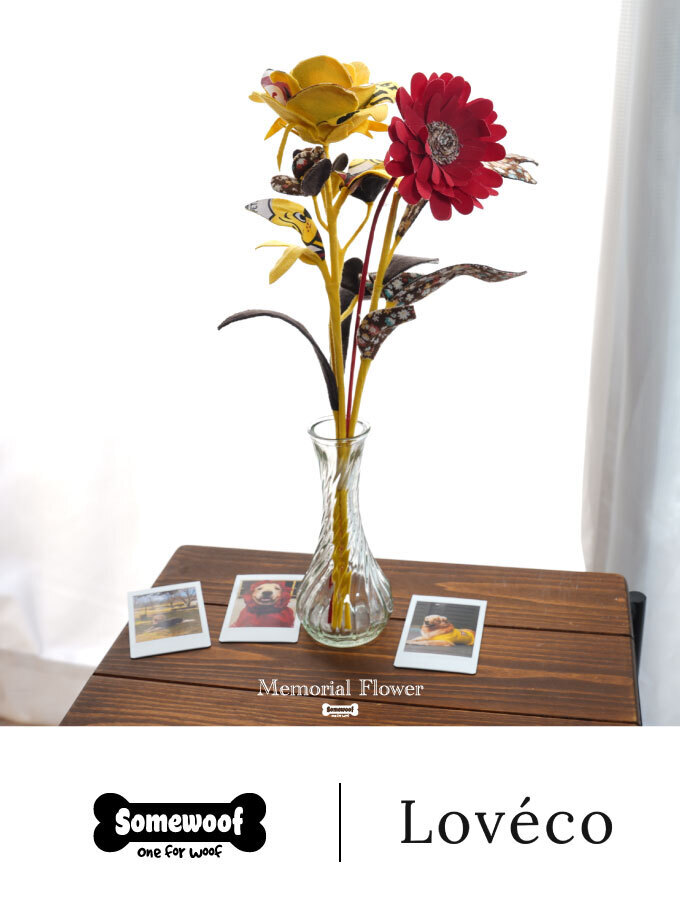 職人の手で“愛情(LOVE)”いっぱいに生まれたものと、“エコロジーやエコノミー(eco)”をブランド名に込めて、「人や物を大切にする」をテーマにものづくりを提案する〈LOVÉCO(ロヴェコ)〉の協力の元、【Somewoof Memorial Flower(サムワン メモリアルフラワー)】をリリースいたしました。