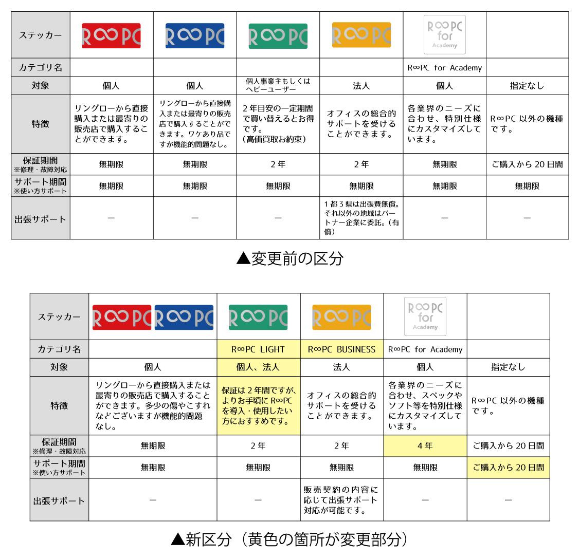 ・個人事業主もしくはヘビーユーザー向けの緑のステッカーを、個人ユーザー・法人ユーザー向けの「R∞PC LIGHT(アールピーシーライト)」に変更。(変更の詳細は後述参照。)