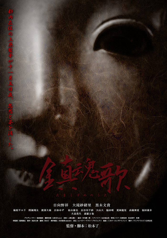 皆様、初めまして日向野祥です 鎮魂歌はホラーという印象がとても強い作品ですがとても深い『想い』や『愛』を表現している作品です。人間の汚い部分も描かれています。是非観ていただき色々な想いを巡らせてもらえたら嬉しく思います。是非、スクリーンでしか味わえない迫力を劇場でご覧下さい!!